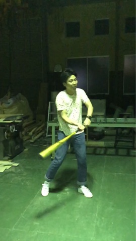 続いて早起き野球のために夜な夜な友達の工場で素振り!